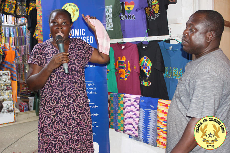 On 23 October 2024, a team from the Economic and Organised Crime sensitised traders at the Accra Art Center on Susu fraud, mobile money fraud, human trafficking and other related types of fraud.