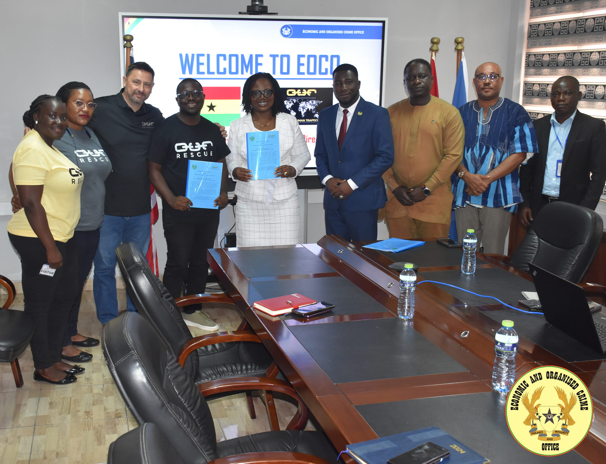 As part of efforts to strengthen collaboration with other Anti-Human Trafficking Organisations, the Economic and Organised Crime Office (EOCO) signed a Memorandum of Understanding (MoU) with OUR Rescue Ghana – a Non-Governmental Organisation which works to support Law Enforcement Agencies in combating child sexual exploitation and Human Trafficking.