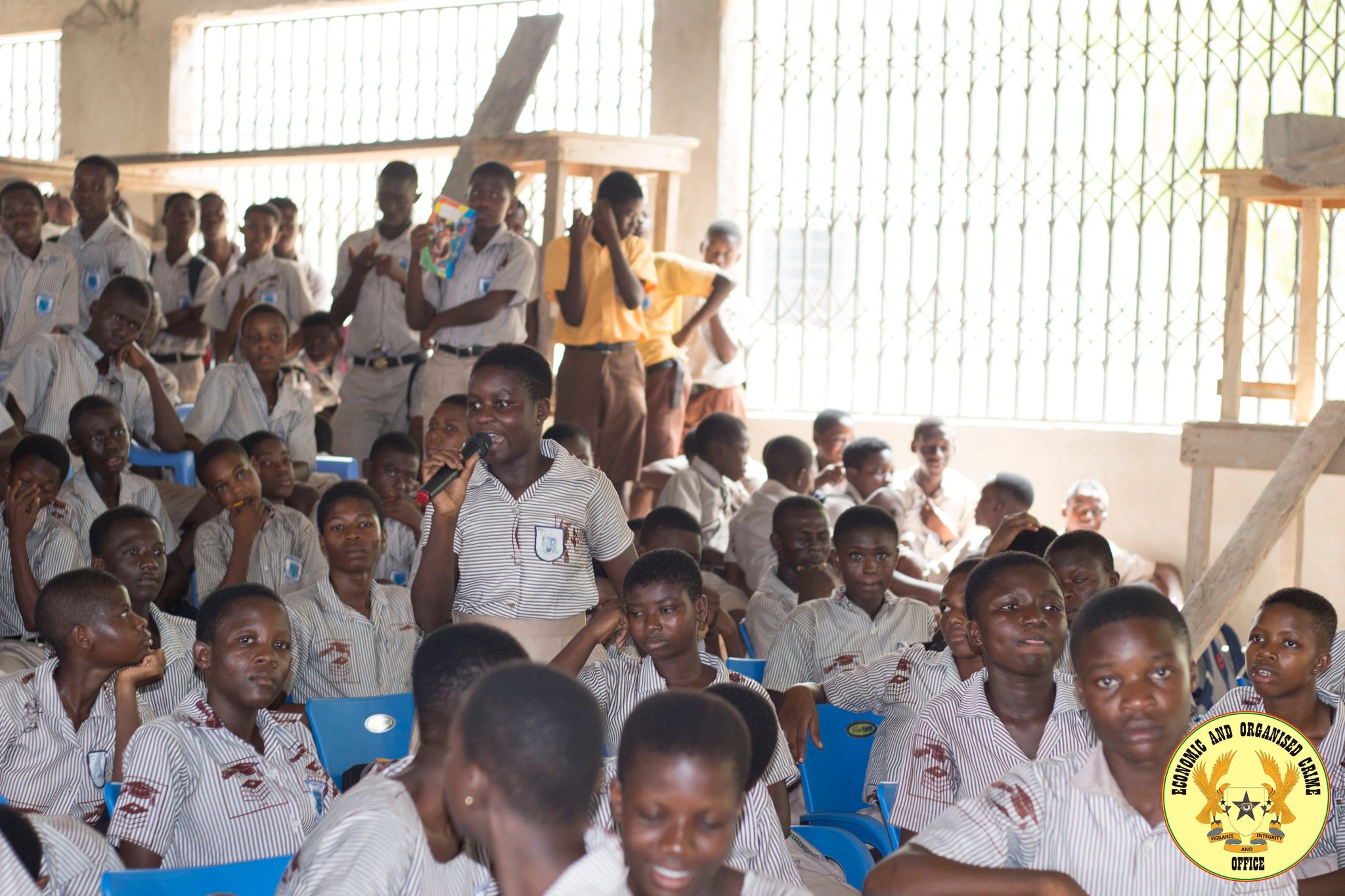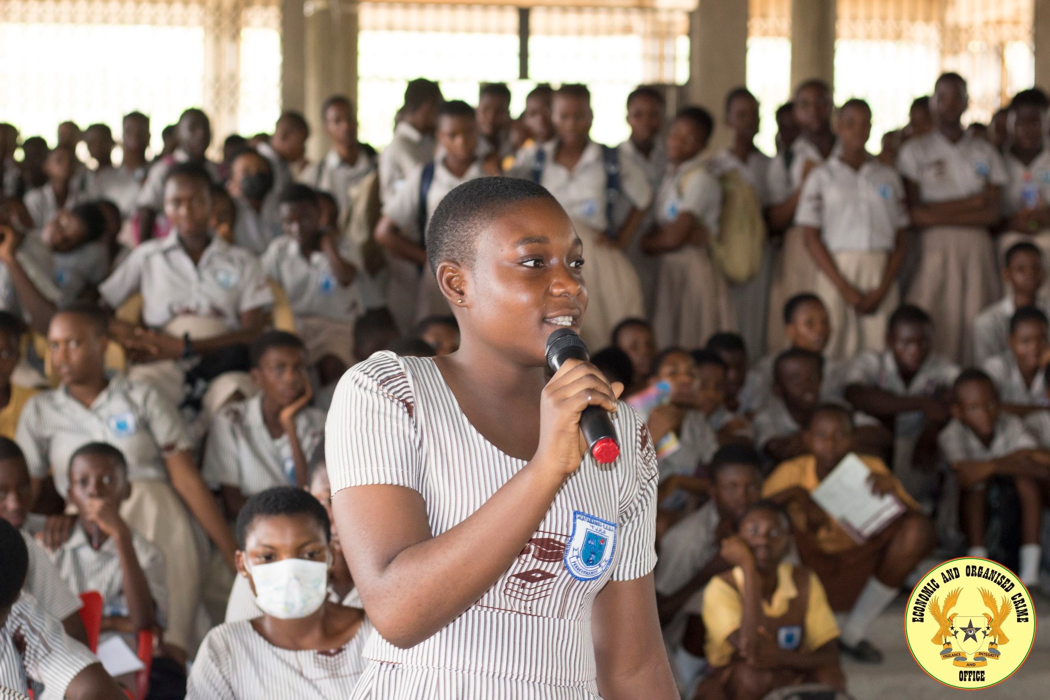 The Public Affairs team of EOCO made its next sensitization stop at the Katamanso KKMA 1&2 Junior High School where they engaged pupils on internet safety practices and to refrain from engaging in any illegal activities while online.