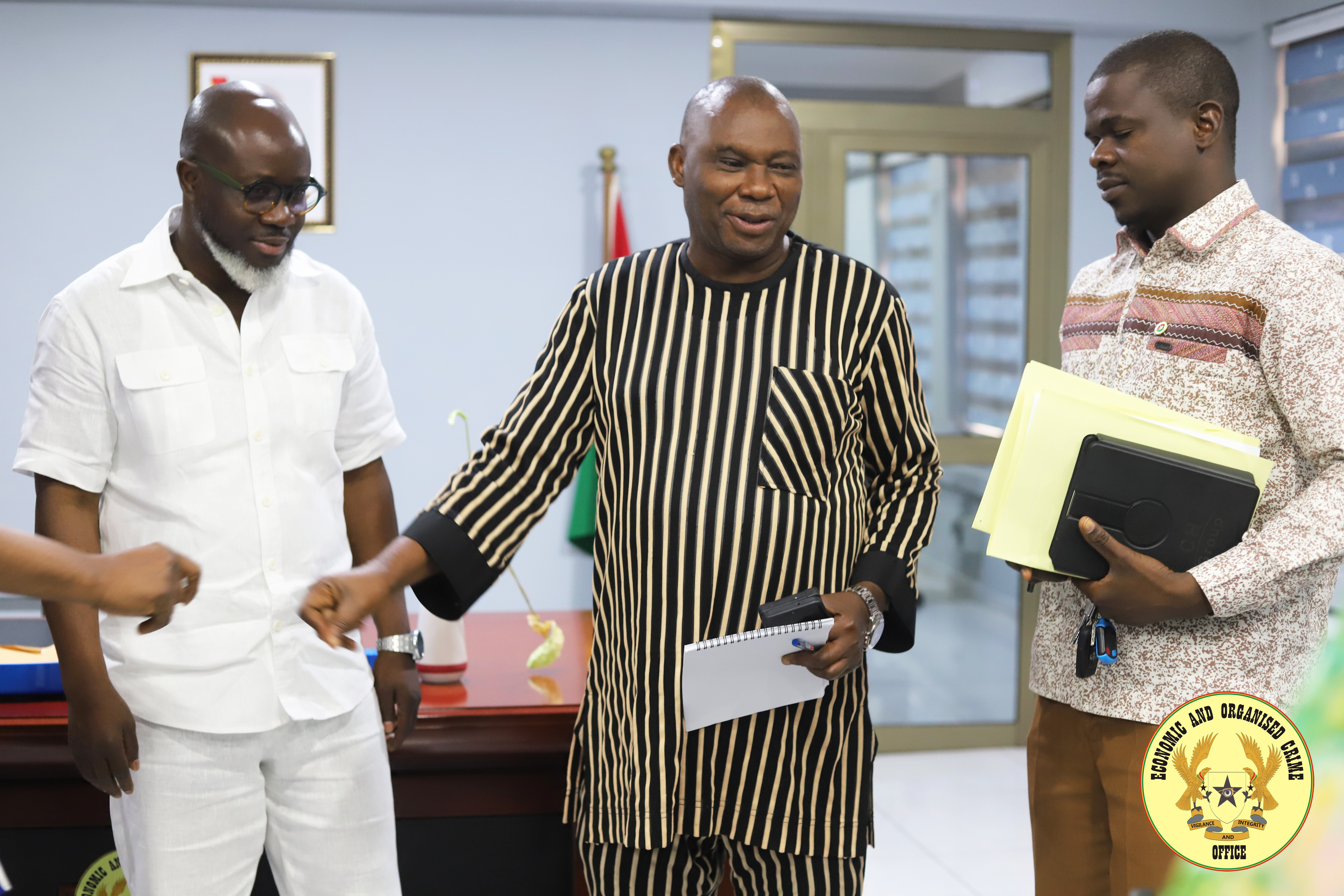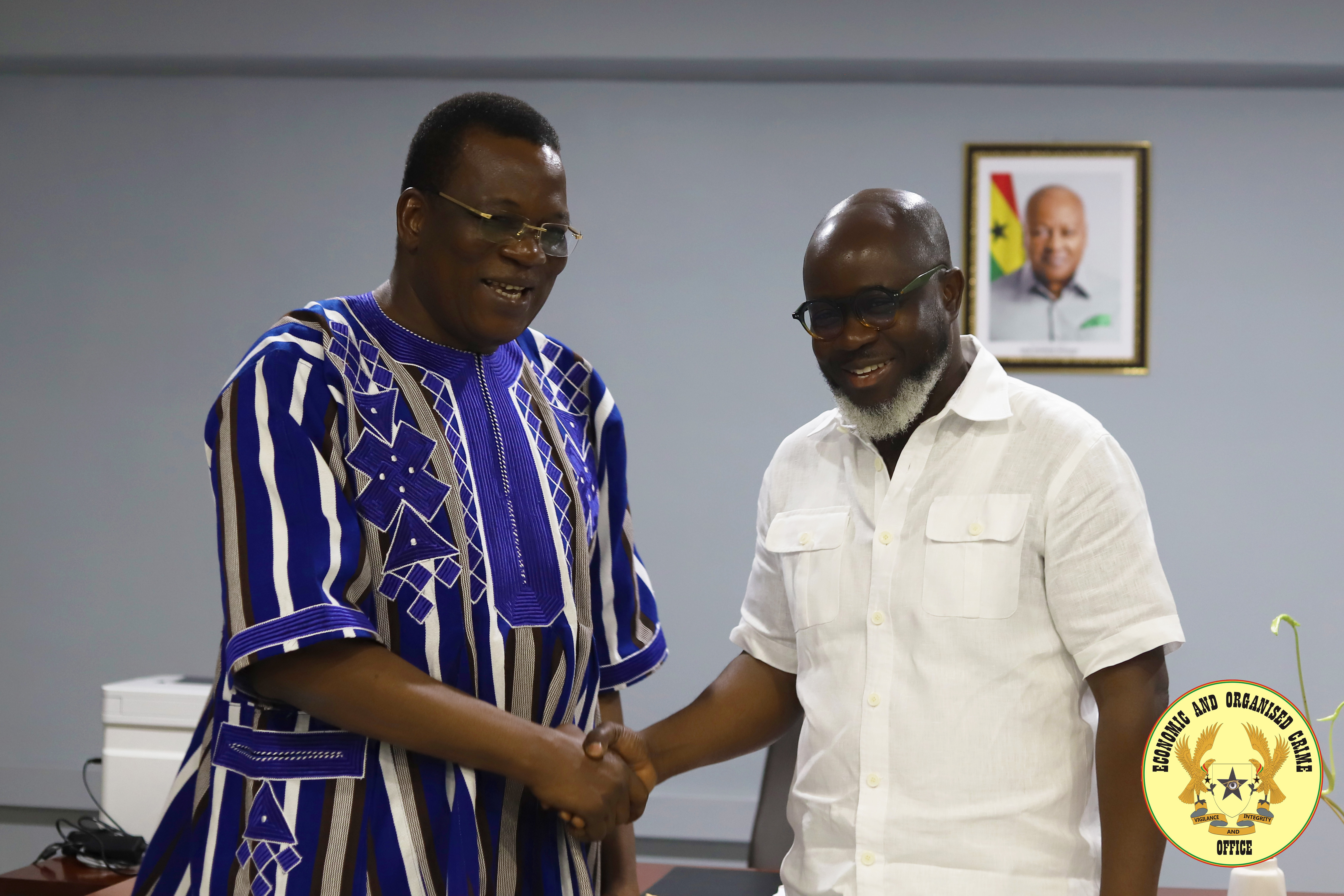 A 4-member delegation from the Burkina Faso Embassy in Ghana led by the Ambassador, H.E David Kabre, has paid a courtesy call on the Executive Director, Mr. Raymond Archer and management of the Economic and Organised Crime Office this morning, 30th May 2025.