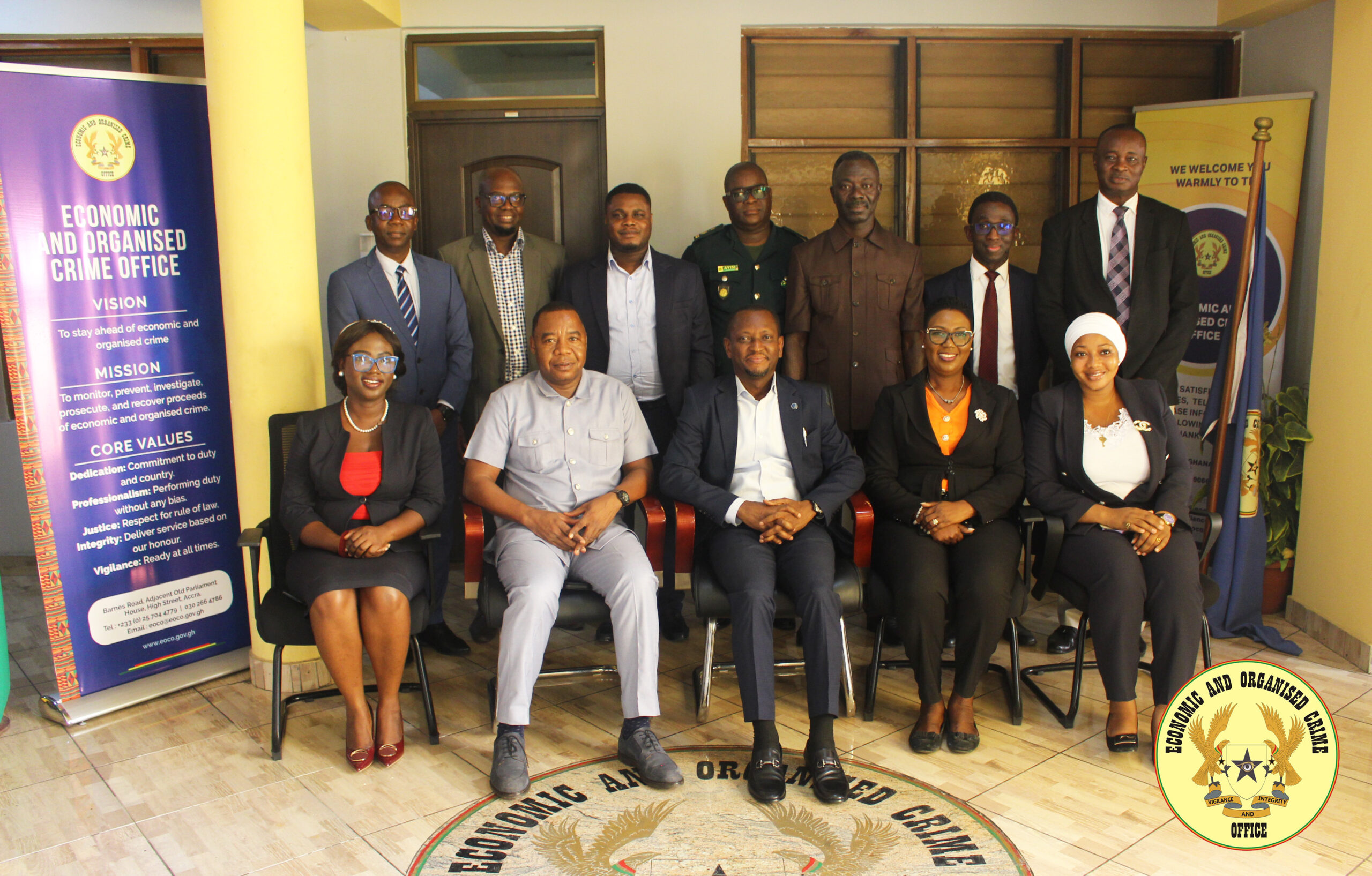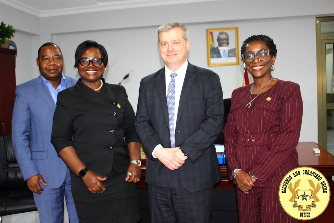 The team, led by the regional Attaché for IRS Criminal Investigation in the Hague, Todd Strom, met with the Executive Director, COP Maame Yaa Tiwaa Addo-Danquah and some members of her management team.