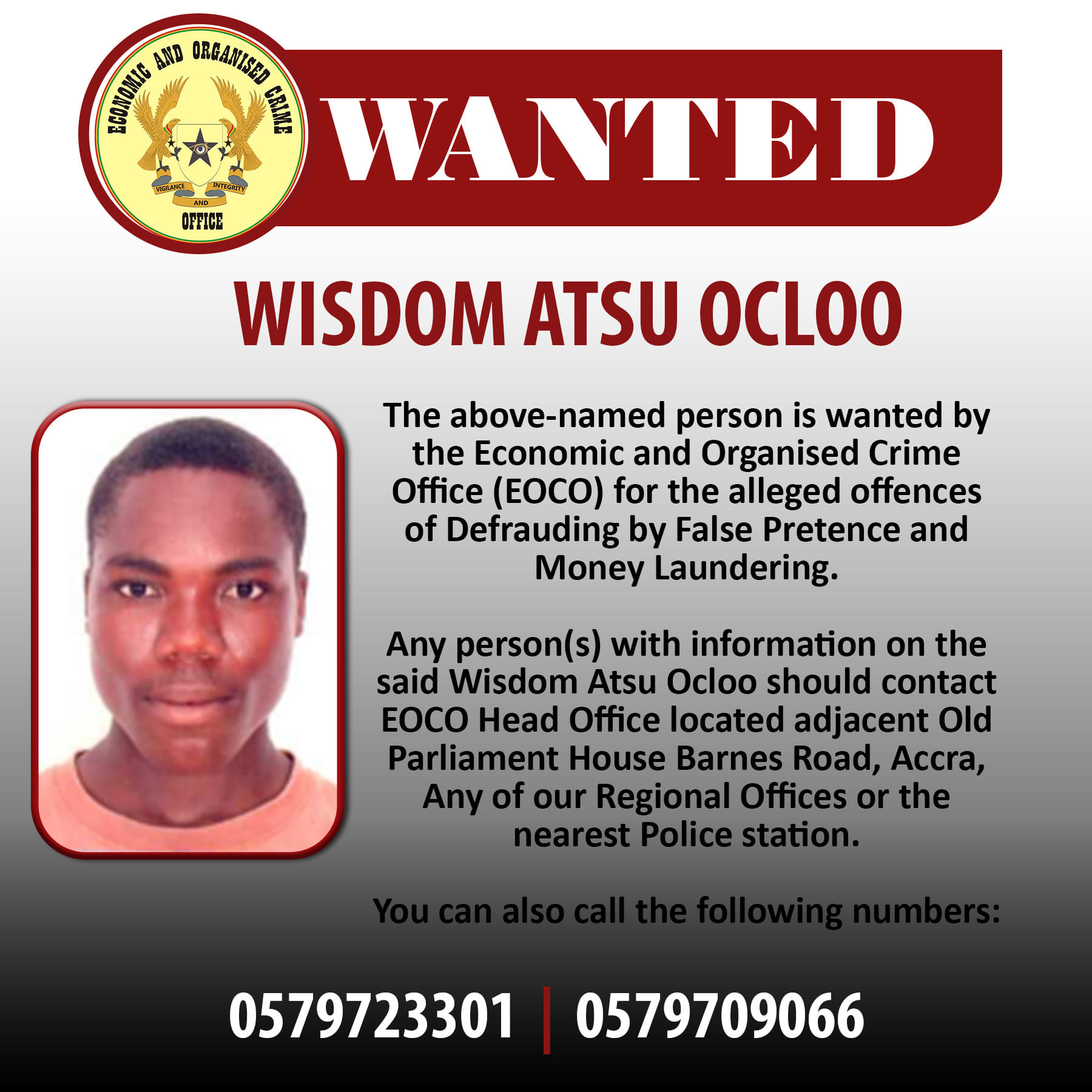WISDOM ATSU OCLOO is wanted by the Economic and Organised Crime Office