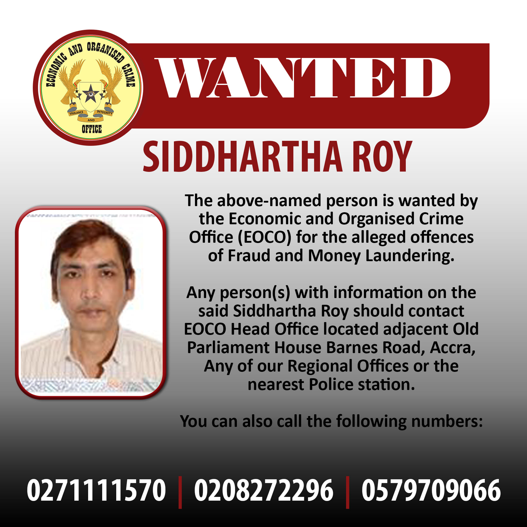 SIDDHARTHA ROY is wanted by the Economic and Organised Crime Office